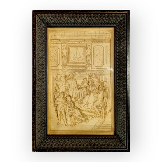 19th Century English Antique Plaster Plaque Depicting William Shakespeare (1564-1616) before Queen Elizabeth I (1533–1603)