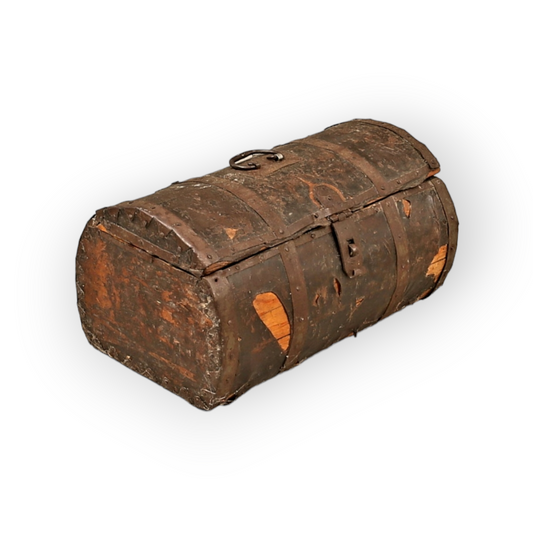 Early 17thC Scandinavian Antique Iron and Leather Bound Table Box of Unusual Form, circa 1600