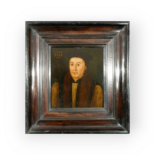 16th Century English School Antique Oil on Wood Panel Portrait of William Waynflete (B.1398 - D.1486)