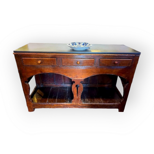 A Rustic Mid 18th Century English Antique Pine Pot Board Dresser Base