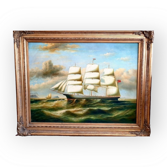Large & Impressive 19th Century Style Oil on Canvas Painting of a Tall Ship or Schooner