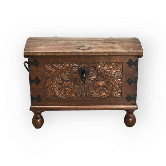 A Diminutive Late 17thC Scandinavian Antique Table Top Kist / Chest Bearing Initials & A Later Date
