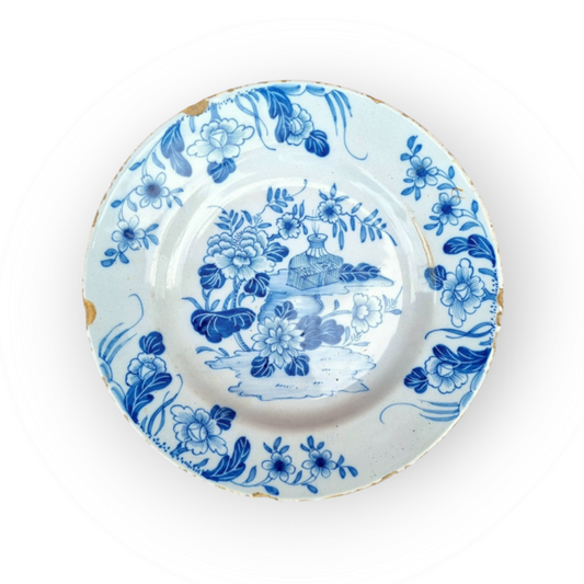 Mid 18th Century Dutch Antique Delftware Plate in the Chinoiserie Manner