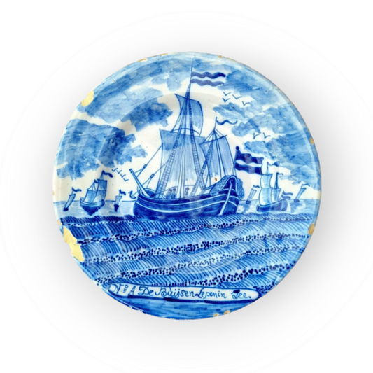 Rare Late 18th Century Dutch Antique Delftware Plate from "The Herring Catch" series of plates, circa 1780