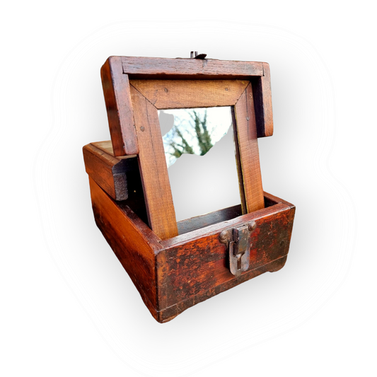 Late 19th Century Continental Antique Treen Gentleman's Travelling Vanity Box With Shaving Mirror