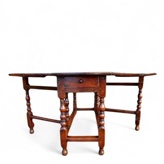 A Well-Patinated Late 17th-Century English Antique Walnut, Elm & Oak Gateleg Table, Circa 1680