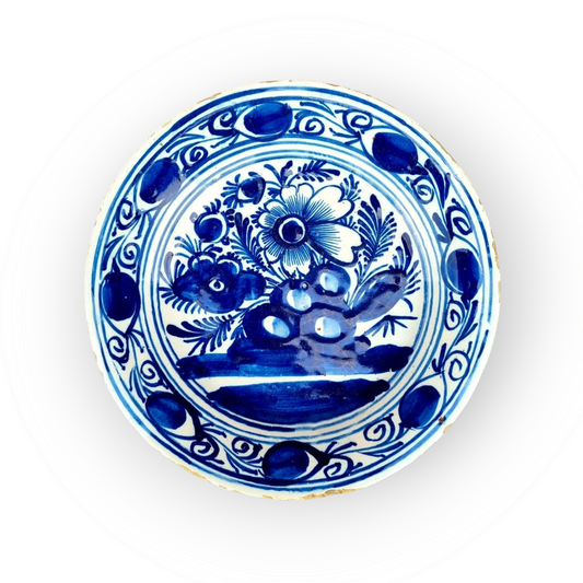 Mid 18th Century Dutch Delftware Plate – Floral Blue & White – Tin-Glazed Earthenware