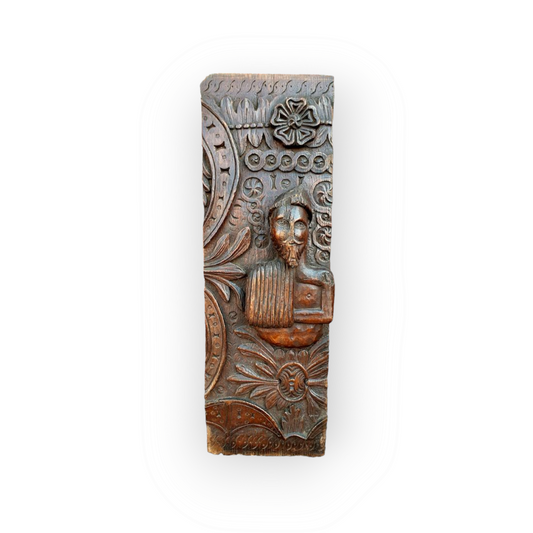 Late 16th Century Large Carved Oak Panel – Male Figure – English Antique