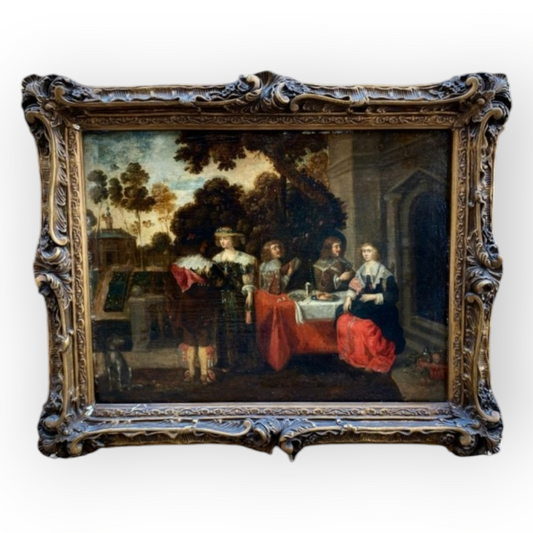 Mid-17th Century Flemish Antique Oil Painting – Courtiers Banqueting – Antique Continental Art