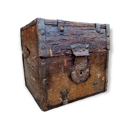Early 17th Century Antique Pine Decanter Box With Iron Bindings