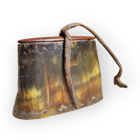 Late 18th-Century Primitive Scottish Antique Horn Tobacco Snuff Box Dated "1799"