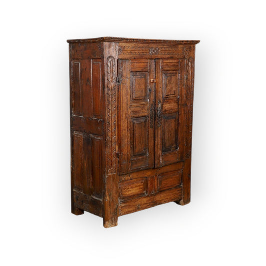 Late 17th Century Antique Oak Press Cupboard / Free Standing Cupboard Of Small Proportions