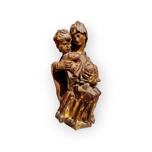 16th-Century Tyrolean Antique Carved Wooden Sculpture Of The Madonna & Child