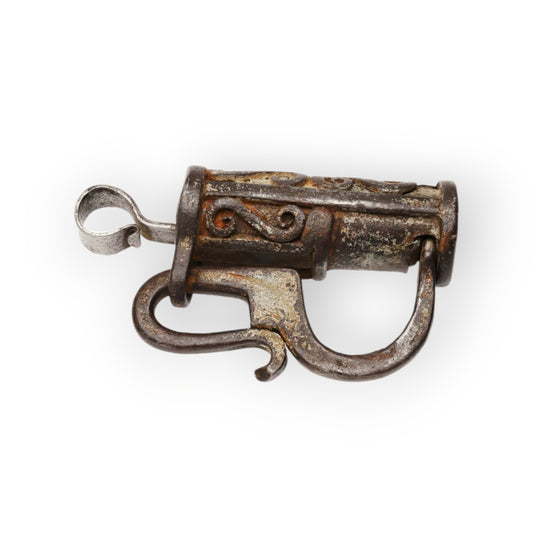 Large Early 17th-Century Antique Iron Bolt Lock / Padlock / Bultlås With Traces Of Original Polychrome