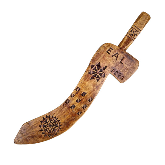 19th Century English Antique Treen "Goose Wing" Knitting Sheath Dated "1877"