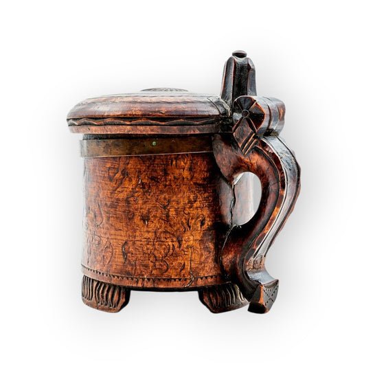 Large Mid-18th-Century Norwegian Antique Treen / Birchwood Peg Tankard