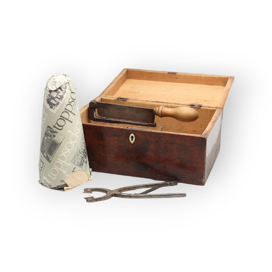 Early 19th-Century Antique Treen Sugar Caddy / Box With Associated Antique Steel Sugar Nips & Sugar Cone