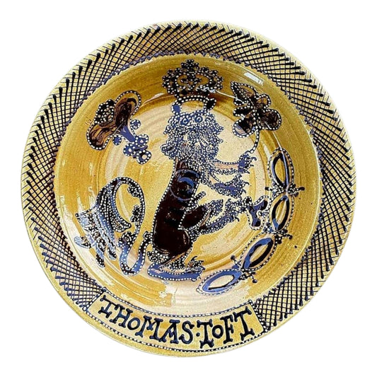Large English Antique Slipware Decorated Earthenware Dish, Bearing The Name Of Thomas Toft (active before 1663 - Died 1689) & A Lion Bearer With A Crown - 1 of 2