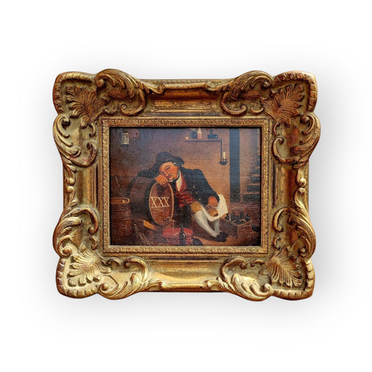 19th-Century Primitive / Naive English School Antique Folk Art Oil On Board Painting Of A Drunken Cellarhand