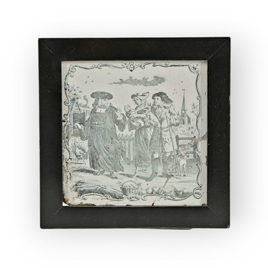 A Rare Mid-18th-Century English Antique Delftware Tile, Entitled "The Tithe Pig", Printed By Sadler & Green, Liverpool, Circa 1760