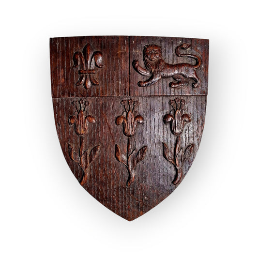 A Small 19th-Century English/French Antique Carved Oak Armorial Panel