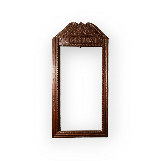17th Century & Later English Antique Oak Mirror Frame or Picture Frame Carved "1633"