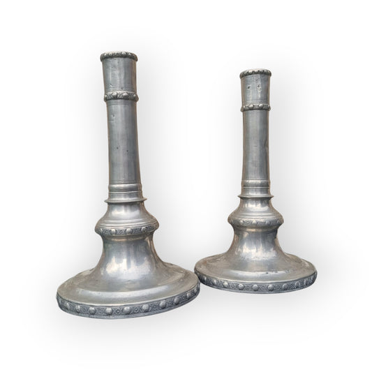 A Pair of 18th Century Gustavian Antique Pewter Candlesticks, Bearing The Name Of M Moberg & Dated "1786"