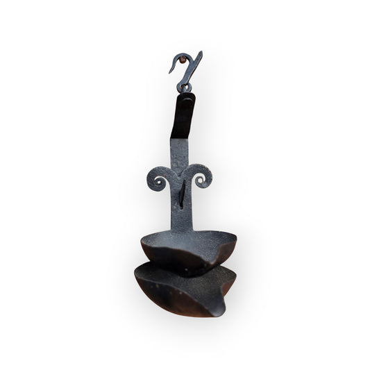 18th-Century Scottish Antique Double-Valve "Ramshead" Wrought Iron Cruisie Lamp