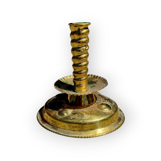 Diminutuve/Dwarf 18th Century Swedish Antique Brass Candlestick 4 1/2" Tall