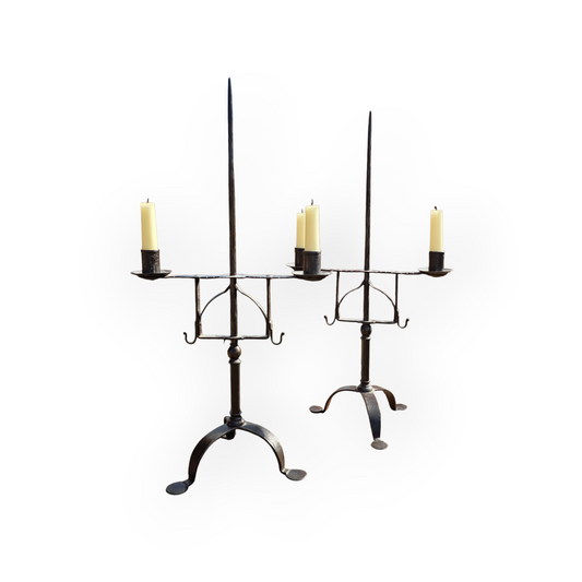 Pair of Early 19th Century Vernacular Antique Wrought Iron Rise-and-Fall Candelabras