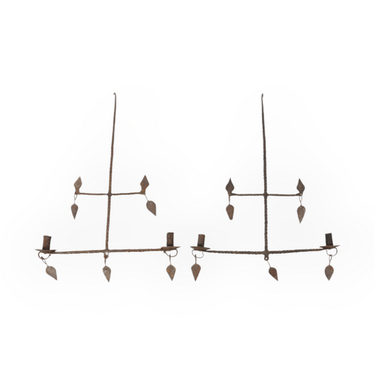 Early 19th-Century Antique Iron Two-Branch Candelabrum / Pricket Candlestick