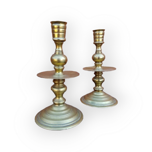 Pair of 17th Century Antique Brass Heemskirk Candlesticks