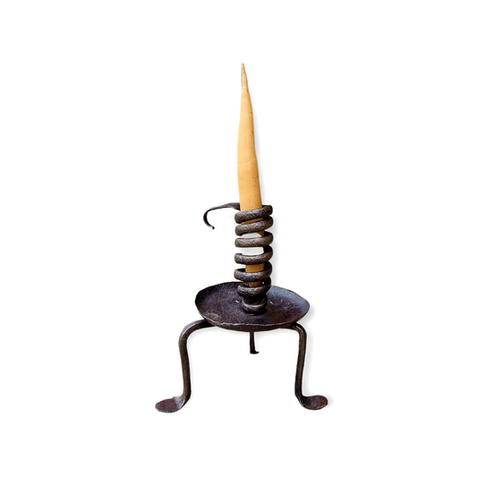 Late 18th Century Primitive Antique Wrought Iron Candleholder or Rat Tail Candleholder
