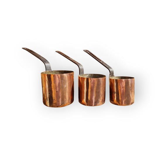 A Set Of Three 19th Century Antique Copper Cooking Pots/Pans Of Graduated Size