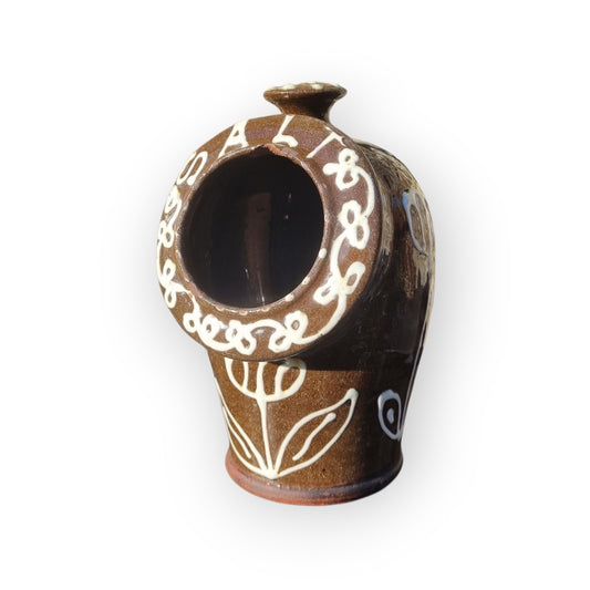 Large Late 19th-Century Slipware Decorated Salt Pig Bearing The Inscription "SALT"