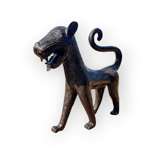 16th Century Style Decorative Antique Benin Bronze Sculpture In The Form Of A Leopard