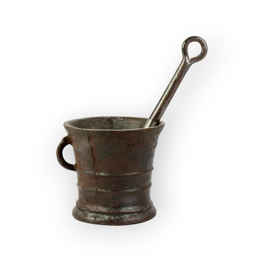 17th-Century Antique Cast Iron Mortar & Associated Pestle