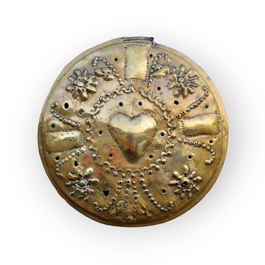 17thC Scottish Antique Brass Repousee-Worked Warming Pan Lid Decorated With A Love Heart