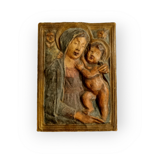 Early 18th Century Italian Antique Cartapesta Panel Of The Virgin & Child
