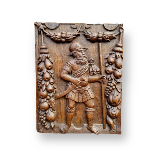 Early 17th Century Flemish Antique Carved Oak Panel Depicting a Warrior