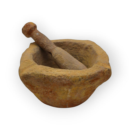 17th-Century Antique Cast Iron Mortar & Associated Pestle