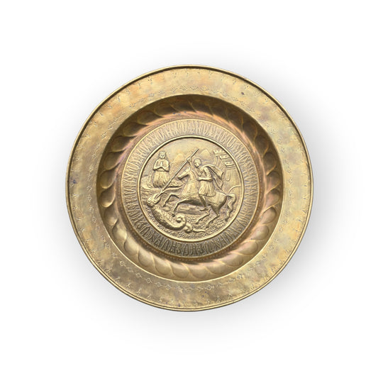 Large 19th‑Century Antique Brass Charger / Alms Dish in the 16th‑Century Style – Saint George Slaying the Dragon