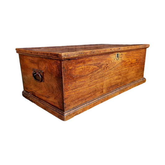 18th-Century English Antique Elm Bible Box / Boarded Box