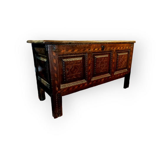 Early 17th‑Century English Antique Oak Boarded Coffer / Chest