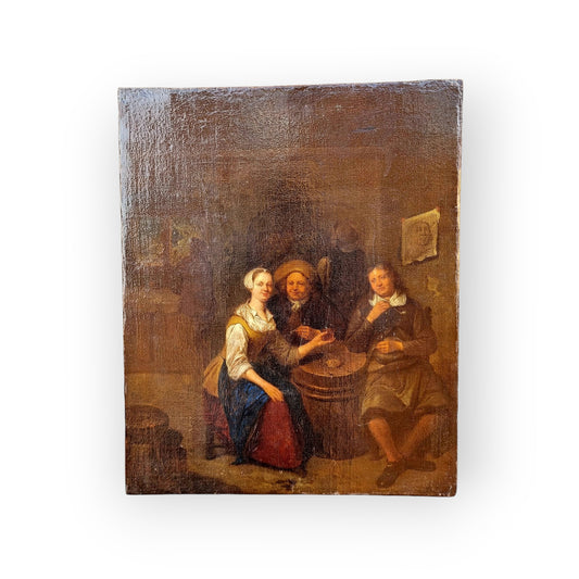 Attributed to Gillis Van Tilborg The Younger (1625-1678) - A 17th-Century Dutch School Antique Oil On Canvas Of An Interior Tavern Scene