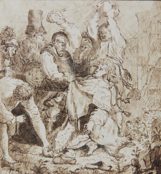 Follower of Rembrandt (1606-1669) - An early 19th Century Continental School Pen and Ink Drawing Depicting the Stoning of St. Stephen