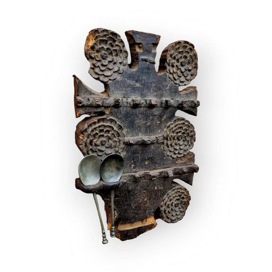 A Primitive Early 17thC English / Dutch Antique Oak Spoon Rack In Attic-Found Condition