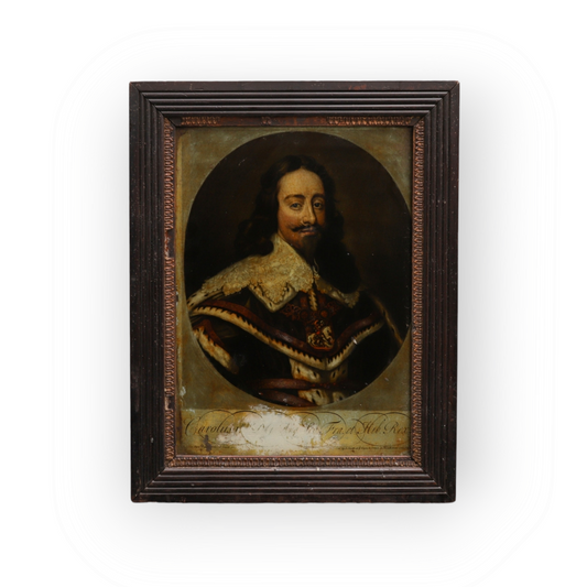 Early 18th Century English Antique Reverse Print On Glass of King Charles I, (1600-1649)