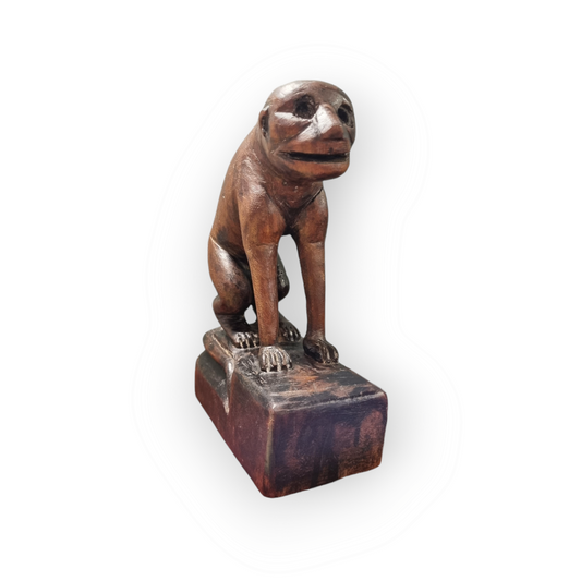 Naive 15th Century English Antique Carved Oak Pew End Sculpture of a Stylised Dog Sejant