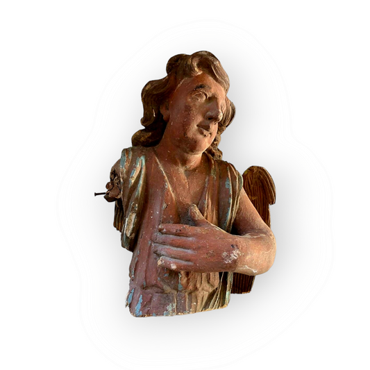 Stolen From Our Shop. Large 17th Century Baroque Period Antique Carved Wood Sculpture Of An Angel